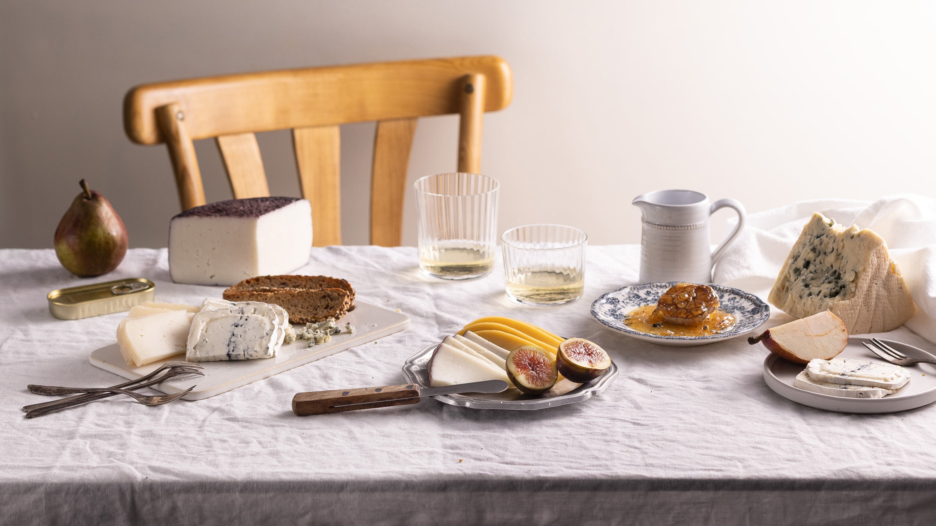 מגש גבינות רכות עם מבחר גבינות קלאסיות, עגבניות וזיתים