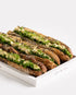 מגש אירוח מוקפד עם כריכים אישיים בלחמנייה ללא קמח חיטה, המשלבת זרעי צ’יה, טף ופשתן. שילוב אידיאלי בין מרקם עשיר, טעמים מוכרים והגשה אלגנטית – מתאים לאירוח בוקר, ישיבות וכיבוד חלבי מגוון.