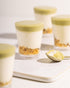 מגש כוסיות מוס פיסטוק ושוקולד לבן כולל כוסיות אישיות בשכבות: קראמבל פיסטוק בתחתית, מוס שוקולד לבן רך וקטיפתי, ושכבת קרם פיסטוק עשיר המשלימה את החוויה בטעם אגוזי ומאוזן.